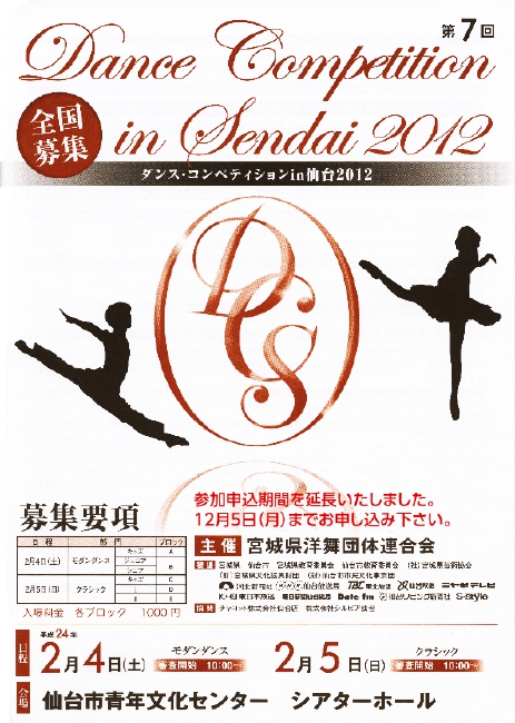 宮城県知事賞・仙台市長賞受賞作品は「第27 回国民文化祭協賛・芸術銀河2 012 協賛(みやぎ県民文化創造の祭典) ・県芸術祭参加第43 回洋舞公演」にて披露していただく予定です。